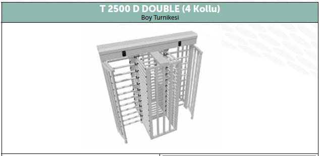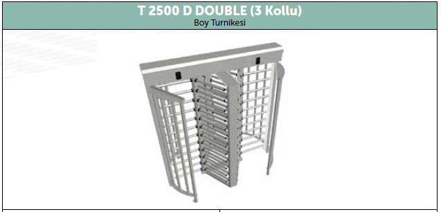 T 2500 D DOUBLE (ÇİFTLİ) 3 & 4 KOLLU SERİSİ MAKİM BOY TURNİKELERİ