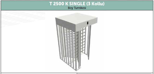 T 2500 K SINGLE (TEKLİ) 3 & 4 KOLLU SERİSİ MAKİM BOY TURNİKELERİ